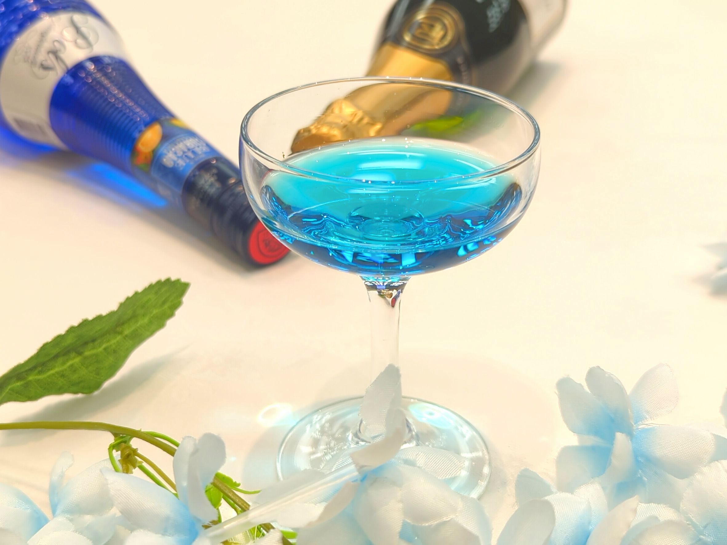ブルーキュラソーのほのかな甘みに、スパークリングワインの泡立ちが爽やかに調和。