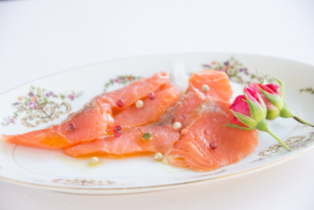 ・サーモンと季節野菜のミルフィーユ 柚子アイオリソース